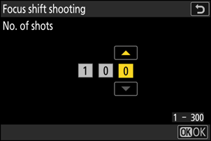 | [ Larghezza step di messa a fuoco ] | Il cambio di messa a fuoco varia la distanza di messa a fuoco su una serie di fotografie. Scegli la quantità di modifica della distanza di messa a fuoco a ogni scatto. |