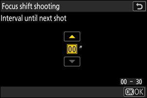 - La fotocamera scatta fotografie all'intervallo selezionato, partendo dalla distanza di messa a fuoco selezionata all'inizio dello scatto e procedendo verso l'infinito in base alla distanza di messa a fuoco selezionata a ogni scatto.