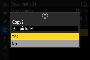 - Iezīmējiet [ Yes ] un nospiediet J lai kopētu atlasītos attēlus.