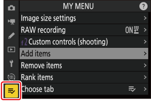 Om [ MIJN MENU ] te bekijken, selecteert u het tabblad O in de cameramenu's.