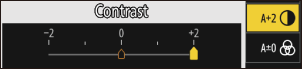 | [ Effectniveau ] | Wordt alleen weergegeven wanneer een Creative Picture Control is geselecteerd. Het effect van de geselecteerde Picture Control dempen of versterken. | |
