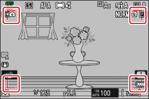 - Du kan legge merke til følgende i opptaksdisplayet. Disse fenomenene vil også være synlige på alle bilder tatt med kameraet: