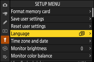 Apăsaţi G , iar în meniul de configurare evidenţiaţi [ Limbă (Language) ] şi apăsaţi 2 .