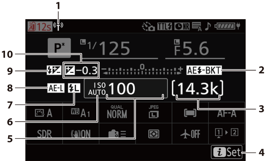 - Indikator kompenzacije bliskavice ( 0 Kompenzacija bliskavice )
