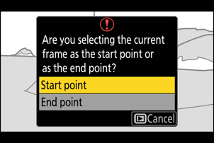 - Да бисте уклонили само завршни снимак из видео записа, означите [ Krajnja tačka ] и притисните J у кораку 4, изаберите оквир за затварање и пређите на корак 7 без притискања центра подселектора у кораку 6.