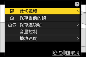 按下i按钮,加亮显示[裁切视频]并按下2。