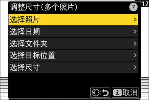 [选择照片] 为所选照片调整尺寸。您可选择多张照片。
