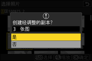 • 屏幕中将显示一个确认对话框;加亮显示[]并按下J可保存调整尺寸后的副本。