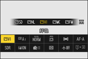 在照片模式下按下i按钮可显示下列项目。使用多重选择器加亮显示所需项目,然后按下J可以查看选项。