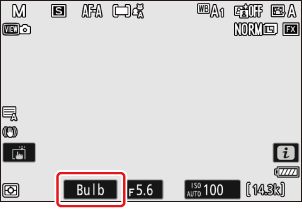 旋轉主指令撥盤選擇快門速度 Bulb(B 門)或 Time(定時)。