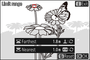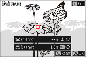 Naciśnij przycisk O , aby zresetować wartości ustawione dla opcji [ Najbliższy ] i [ Najdalszy ].
