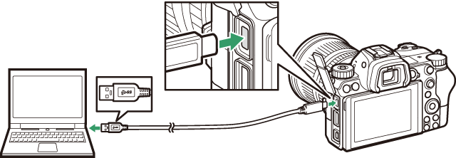 Para cargar imágenes a un ordenador, conecte la cámara a través de una red inalámbrica o con el cable USB suministrado.
