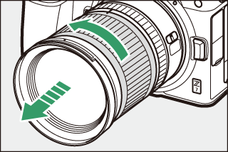 Les objectifs dotés de barillets rétractables doivent être sortis avant toute utilisation. Tournez la bague de zoom de l’objectif comme illustré, jusqu’à ce que l’objectif sorte en émettant un déclic.