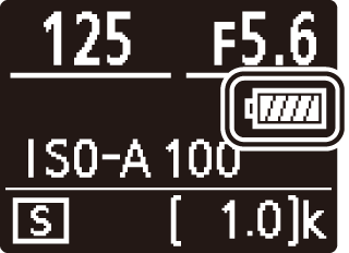 カメラの電源をONにすると、撮影画面または表示パネルでバッテリーの残量を確認できます。