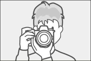 脇を軽く締め、右手でカメラのグリップを包み込むようにしっかりと持ち、左手でレンズを支えます。