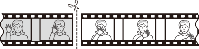 若要仅移除视频的起始片段,请进入步骤7而无需在步骤6中按下副选择器的中央。若要仅移除结束片段,请在步骤4中选择结束点,选择结束画面,然后进入步骤7而无需在步骤6中按下副选择器的中央。