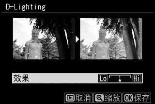 D-Lighting可增亮暗部,以使黑暗或背光照片达到理想的效果。