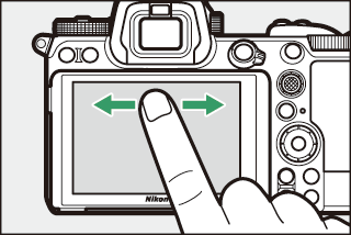 Dotykový monitor nabízí řadu ovládacích prvků, které lze ovládat dotykem prstů na displeji. Během fotografování s hledáčkem jsou dotykové ovládací prvky deaktivovány a nelze je použít k ostření a podobně.