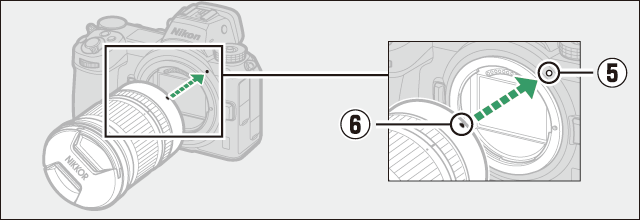 Zarovnejte montážní značky na fotoaparátu ( t ) a objektivu ( y ). Nedotýkejte se obrazového snímače ani kontaktů objektivu.