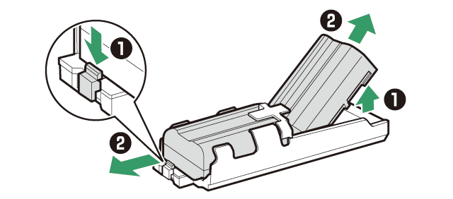 Zavřete kryt komory držáku a zajistěte jej stisknutím a posunutím ve znázorněném směru.