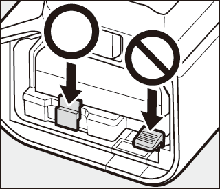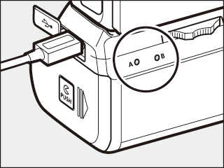 Není třeba vkládat baterii do komory B. Baterie vložené do komory B se nepoužívají, pokud je fotoaparát napájen síťovým adaptérem a napájecím konektorem.