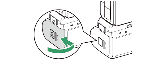 Chcete-li MB-N11 sejmout, vypněte fotoaparát a poté uvolněte upevňovací kolečko jeho otočením v opačném směru, než jak ukazuje šipka. Po vyjmutí MB-N11 sejměte krytku prostoru pro baterii z držáku krytky prostoru pro baterii a nasaďte ji na fotoaparát.