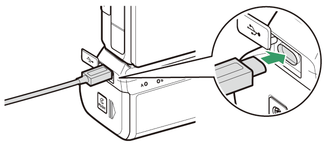 EH‑7P nebude nabíjet baterie, pokud je připojen k portu USB fotoaparátu a je připojen MB-N11. Připojte EH-7P k nabíjecímu konektoru na MB-N11.