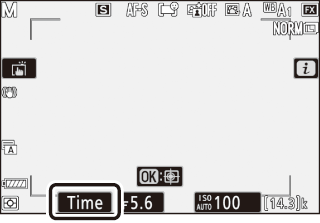 „Time“ : Stlačením tlačidla spúšte úplne nadol spustíte expozíciu.