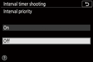 Zvoľte dlhší interval, než je čas potrebný na zhotovenie zvoleného počtu záberov pri predpokladanej rýchlosti uzávierky. Upozorňujeme, že počas skutočného intervalového fotografovania musí fotoaparát nielen zhotovovať zábery vo zvolenom intervale, ale musí mať aj dostatok času na dokončenie expozícií a vykonanie takých úloh, ako je spracovanie fotografií. Ak je interval príliš krátky na nasnímanie zvoleného počtu fotografií, fotoaparát môže preskočiť na ďalší interval bez snímania.
