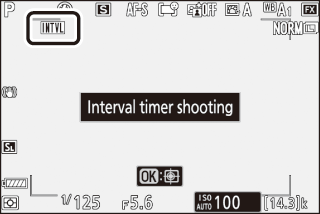 Ak chcete ukončiť fotografovanie s intervalovým časovačom pred nasnímaním všetkých fotografií, vyberte položku [ ] v ponuke snímania fotografií, zvýraznite [ ] a stlačte J . Upozorňujeme, že ponuky sa po stlačení tlačidla G nemusia zobraziť, ak je čas vybratý pre položku [ ] veľmi krátky. V takom prípade budete musieť stlačením J pozastaviť intervalové fotografovanie a potom vybrať [ ] v ponuke fotografovania, zvýrazniť [ ] a stlačiť J .