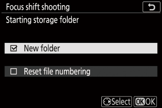 Začiarknutím ( M ) vedľa položky [ ] obnovíte číslovanie súborov na 0001 vždy, keď sa vytvorí nový priečinok.