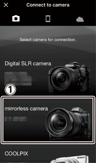 Inteligentné zariadenie: Keď sa zobrazí výzva na výber typu fotoaparátu, klepnite na [ ] a potom klepnite na [ ].