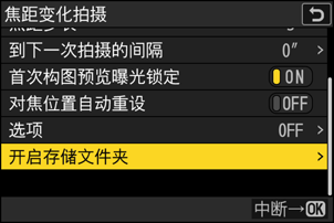 - 在照片拍摄菜单中选择[焦距变化拍摄],加亮显示[关闭]并按下J,