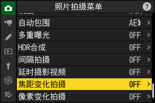加亮显示照片拍摄菜单中的[焦距变化拍摄]并按下2。