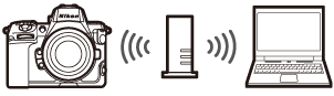 照相机和计算机通过直接无线连接进行连接。照相机用作无线局域网络访问点,让您可在室外操作时或者计算机尚未连接至无线网络的情况下进行连接,无需复杂的设定调整。连接至照相机期间,计算机无法连接至互联网。