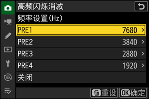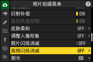 您可通过照片拍摄菜单中的[高频闪烁消减]配置频率。