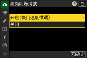加亮显示照片拍摄菜单中的[高频闪烁消减]并按下2。