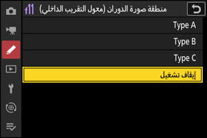 لقد أضفنا عنصر [منطقة صورة الدوران (محول التقريب الداخلي)] إلى قائمة الإعدادات الاعتيادية في الموضع f11. عند تركيب عدسة NIKKOR Z مع محول تقريب مدمج، تعمل هذه الميزة على تبديل منطقة الصورة عند تشغيل مفتاح محول التقريب لتغيير الطول البؤري للعدسة في وضع الصورة.
