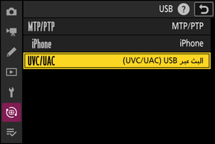 • تغيير إعداد [USB] في قائمة الشبكة من [البث عبر ‎USB‏ (UVC/UAC)
