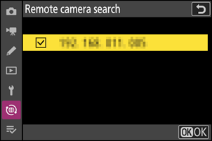 Gå til [ Opret forbindelse til andre kameraer ] > [ Gruppeindstillinger ] > (gruppens visningsnavn) på masterkameraet, marker [ Liste over fjernkameraer ], og tryk på 2 .