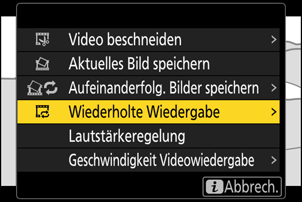 Neue Option im i-Menü der Videowiedergabe: »Wiederholte Wiedergabe«