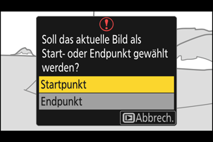 Zum Festlegen einer Wiederholungsschleife, die mit dem aktuell angezeigten Bild beginnt, markieren Sie [Startpunkt] und drücken J.