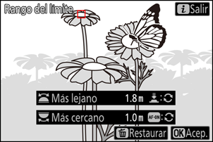 Seleccione los límites cercano y lejano del rango de autofoco de la cámara.