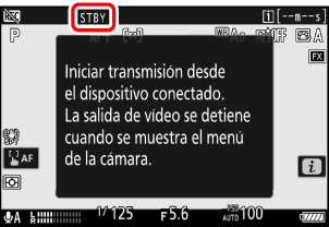 - La cámara entrará en el modo de espera de transmisión y aparecerá un mensaje solicitándole que inicie la transmisión junto con un icono u en la pantalla de disparo.