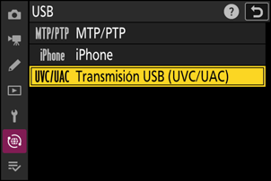 Hemos añadido un elemento [Transmisión USB (UVC/UAC)] a [