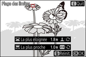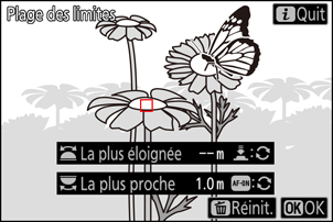 Sélectionnez la limite la plus proche et la limite la plus éloignée de la plage d’autofocus de l’appareil photo.