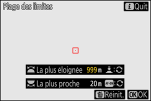 Appuyez sur la commande O (Q) pour réinitialiser les valeurs définies pour [La plus proche] et [La plus éloignée].