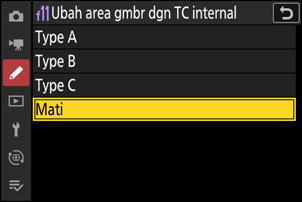Kami telah menambahkan item [Ubah area gmbr dgn TC internal] ke menu Pengaturan Kustom pada posisi f11. Saat lensa NIKKOR Z dengan konverter tele bawaan dipasang, fitur ini menukar area gambar saat kenop konverter tele dioperasikan untuk merubah panjang fokal dari lensa di mode foto.