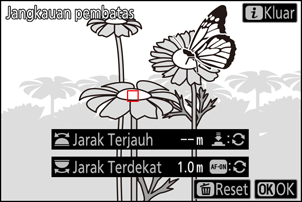 Tekan tombol O (Q) untuk mereset nilai yang diatur bagi [Jarak Terdekat] dan [Jarak Terjauh].