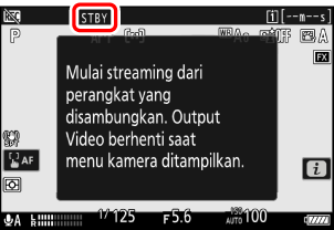- Tampilan pemotretan mode film akan muncul terlepas dari pengaturan selektor foto/film. Pengaturan mode film termasuk keseimbangan putih dan Picture Control akan diterapkan ke gambar streaming.